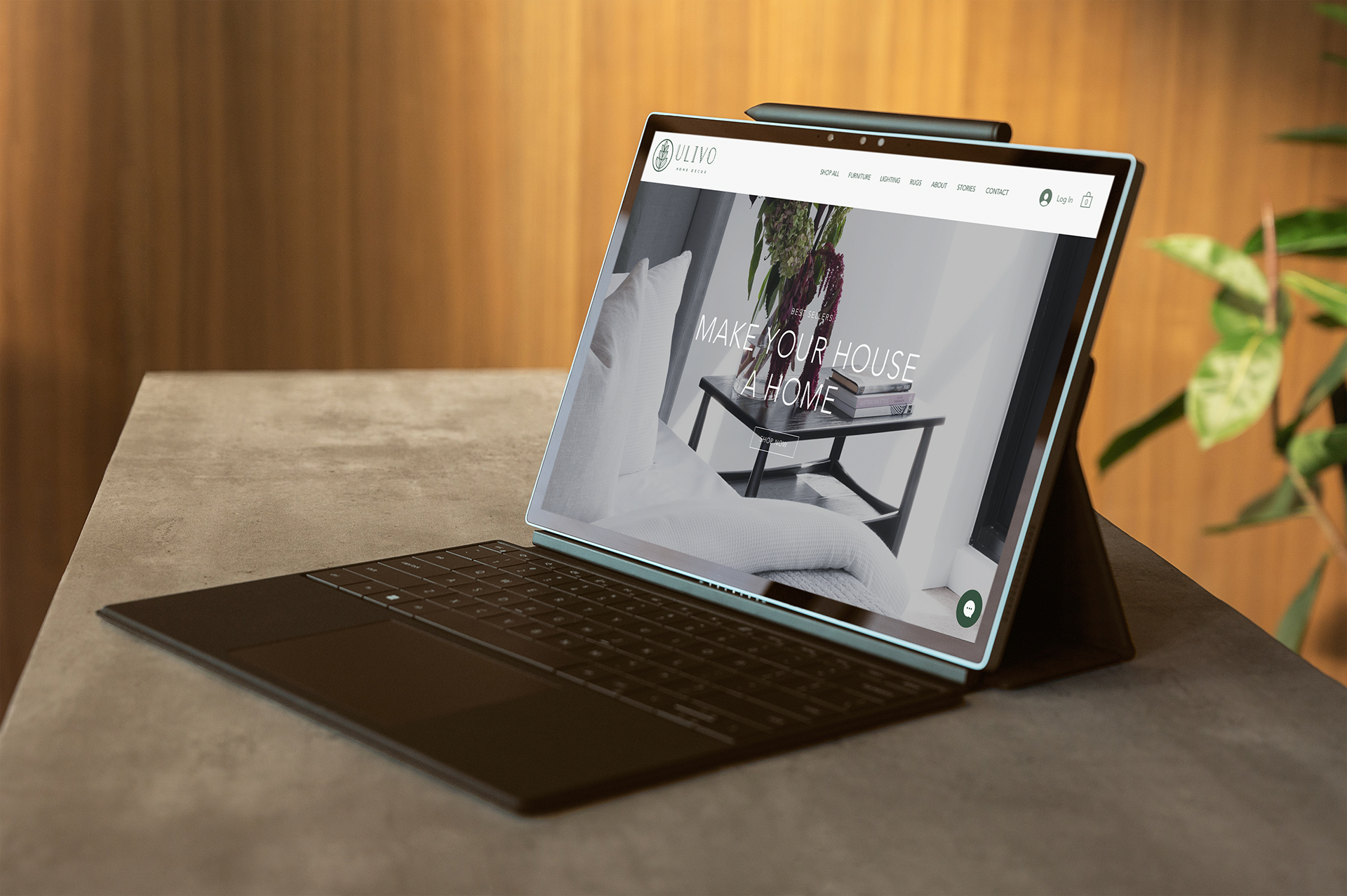 Branding and logo design for Ulivo home decor. Design is inspired by the branch of an olive tree and with the colour scheme creates a tranquil and contemporary aesthetic.